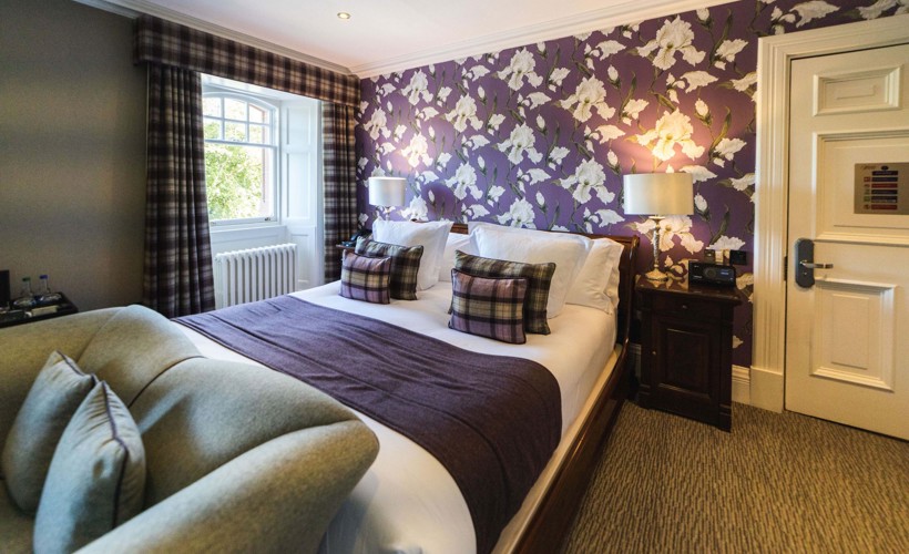 Spacious deluxe room, some with Loch Faskally views, super-king bed, traditional décor and luxury amenities located in the original castle.