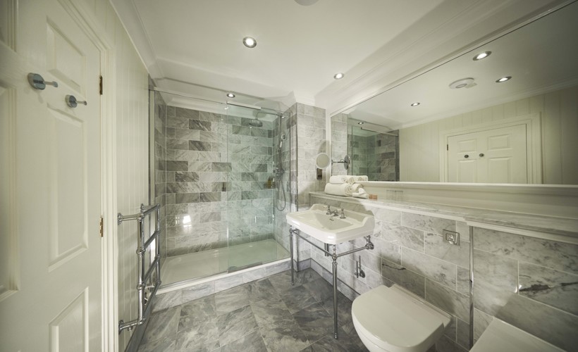 Views across the Moray Firth are the icing on the cake in our seaview rooms. Classic furnishings in dark wood and gold detailing give the rooms an elegance, whilst floor-to-ceiling marbled tiles and luxury bathroom amenities create a fresh, modern feel.
